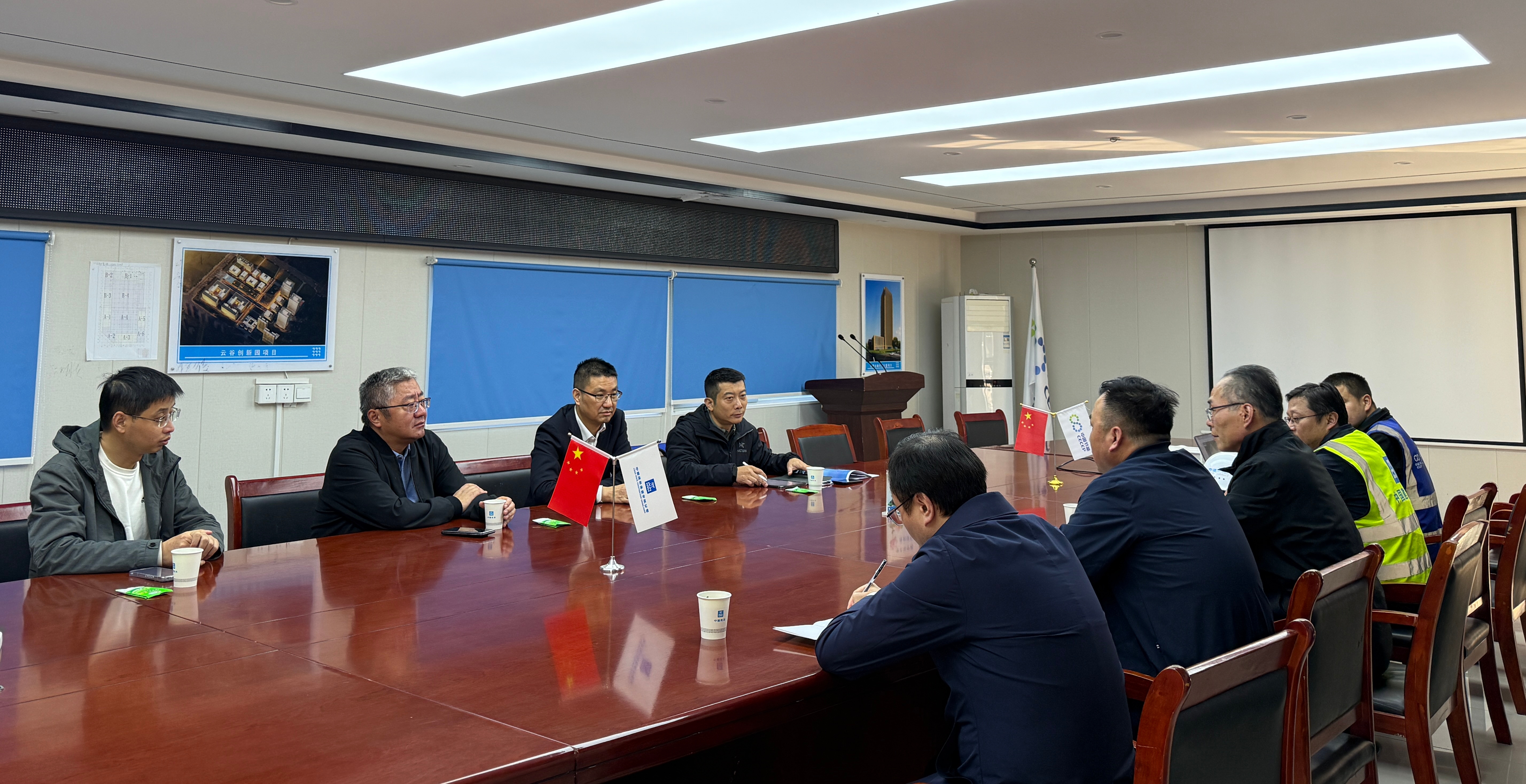 在總部研發基地項目現場,彭云清一行實地察看項目施工情況,詳細了解工程建設進展與后續推進計劃,對項目部當前各項工作的開展成效予以肯定。針對項目后續建設,彭云清指出,總部研發基地建設是關乎公司長遠發展的百年大計,要在堅守“質量第一”、嚴守安全紅線、合規保障民工權益的前提下,凝聚各參建單位力量,科學籌劃、嚴格把關,高效推進項目建設,力爭早日竣工投用,發揮效益。